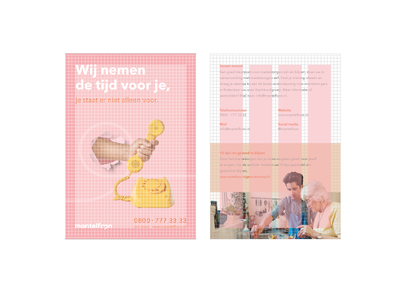 De content dient te allen tijde geplaatst te worden binnen de aangegeven marge. Het logo en de contactgegevens plaats je onderaan. Als de slogan bovenaan als titel wordt gebruikt wordt alleen het logo onderaan geplaatst. Als er een ander titel wordt gebruikt dan zal de slogan in combinatie met het logo onderaan geplaatst moeten worden.